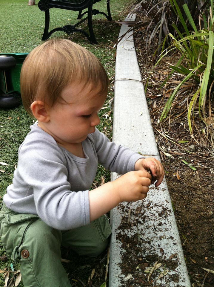 Dirt smells good! A potter in training or a gardener. Great photo. Love those creative fingers.