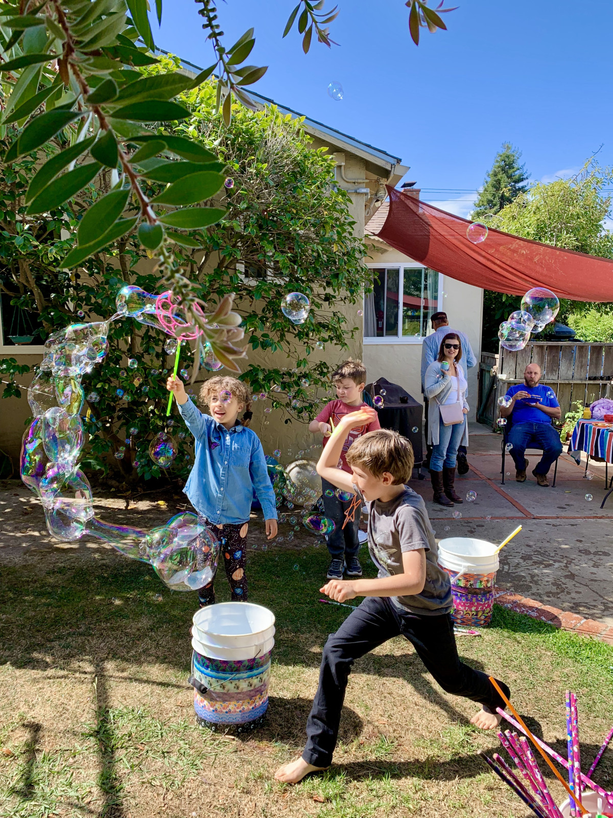 Great outdoor party photo! Sam in perfect form! 🙂