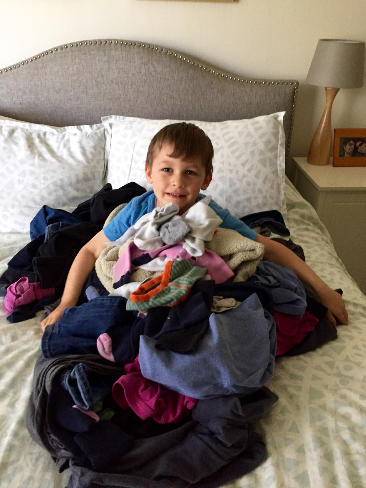 Sam spilled the laundry, posed, and made me take this photo