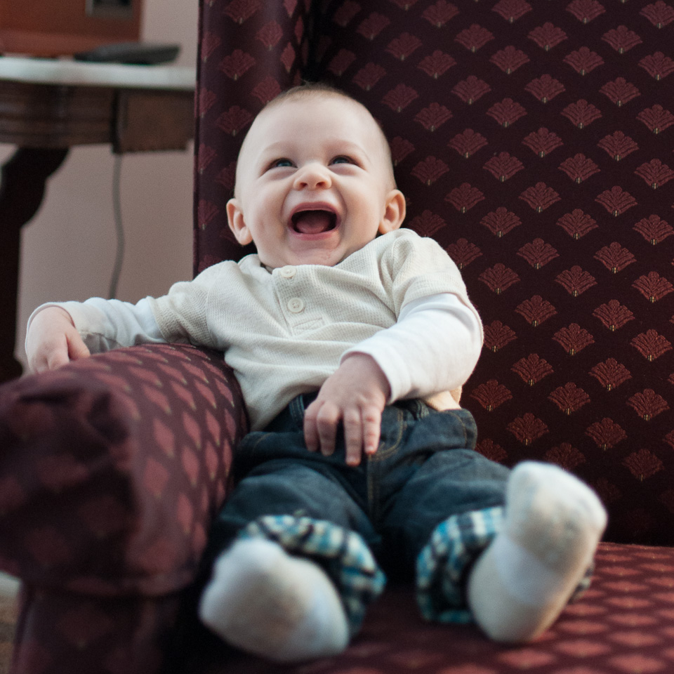 Sitting and smiling