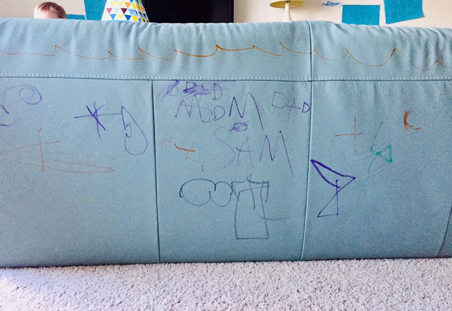Yikes! Goes to show: children take in way more than adults realize. I guess Sam, the artist, was thinking this was a great idea!! In this photograph, I see a triptych, six feet wide, hanging above a lovely sofa repositioned against a wall, sometime in the near future.